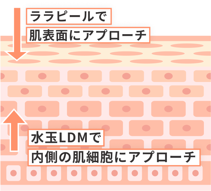 ララピールで角質を整え、LDMで水分とハリを与えることで、ベースメイクがすっと馴染む肌へ導きます。