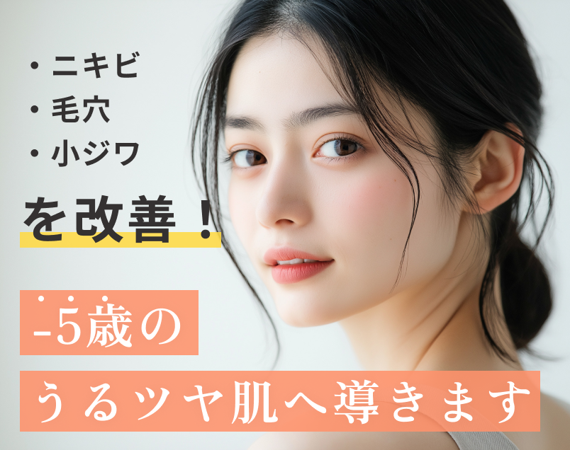 ララピールで詰まりをクリアにし、LDMで肌の水分バランスとハリを整えることで、キュッと引き締まった印象に。